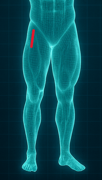 -Lateral al músculo sartorio, recto femoral, al nervio femorocutáneo lateral, ya la arteria femoral.